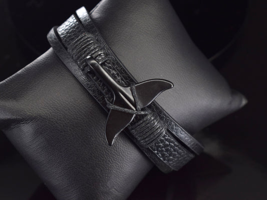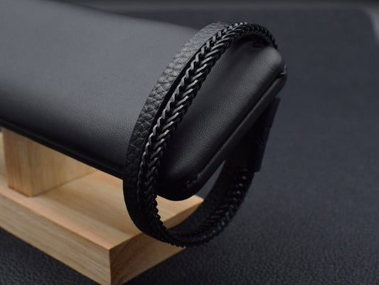 2 in 1 Stainless steel chain bracelet and leather bracelet for men women