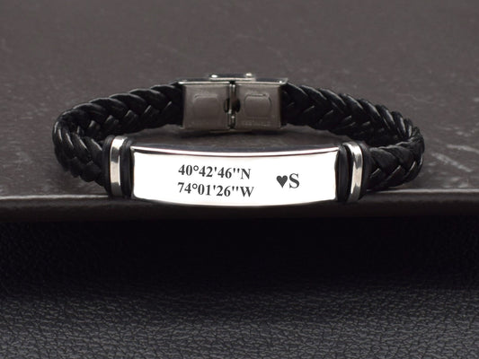 Coordinate leather braided bracelet anniversary gift boyfriend husband