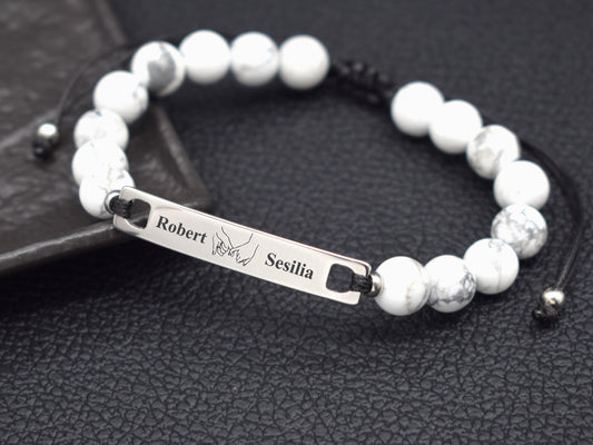 Baby name bracelet gift for new dad Father's day custom men bead bracelet
