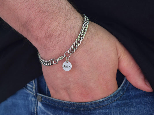 Chain bracelet men Personalized name Engraved bracelets Boyfriend gift