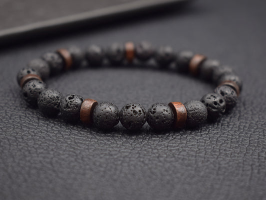 Lava rock bracelet with sandal wood beads Mens diffuser bracelet