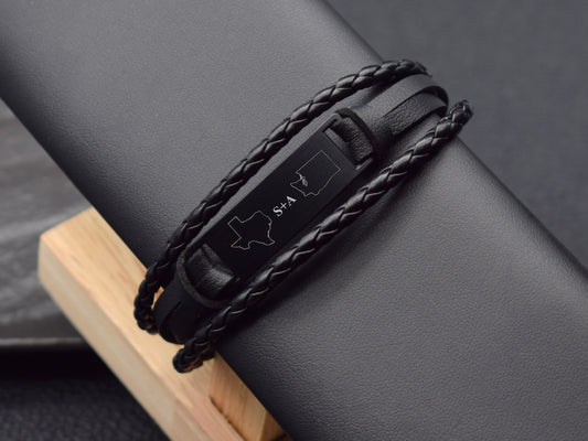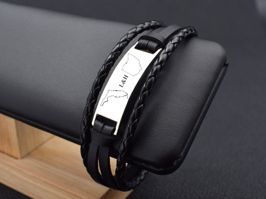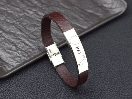 Long distance relationship bracelet leather custom state bracelets gift for him