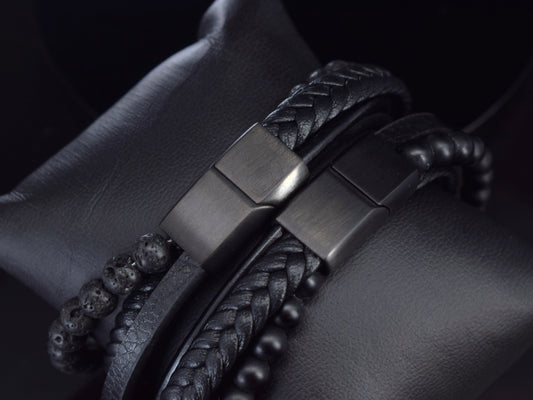 Leather bracelet with lava bead bracelet gift idea for boyfriend