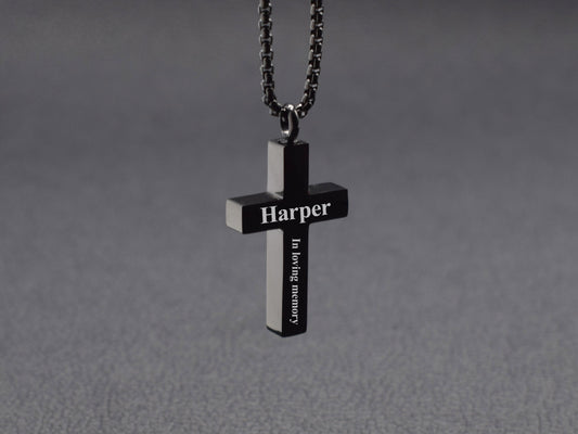 Memorial cross necklace for ashes Loss of a loved one Mens urn pendant
