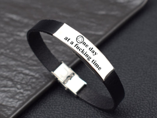 Leather bracelet personalized soberiety anniversary Sober AF One Day At A Time