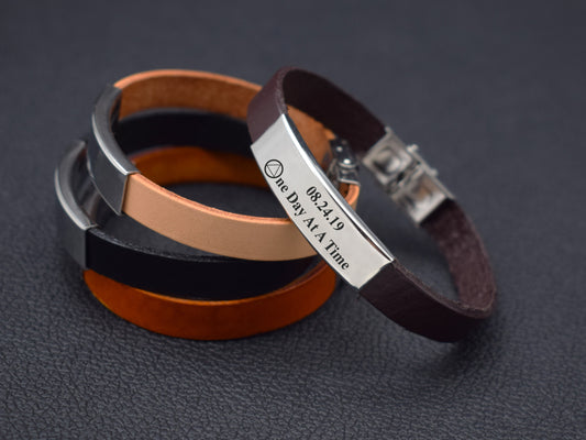 Leather bracelet sobriety gift men women AA 12 step recovery jewelry
