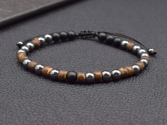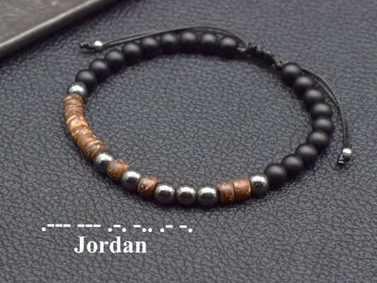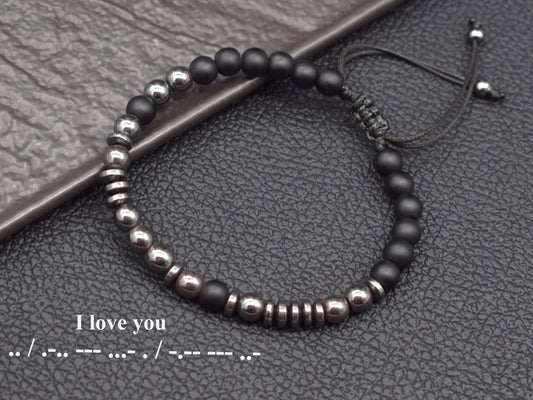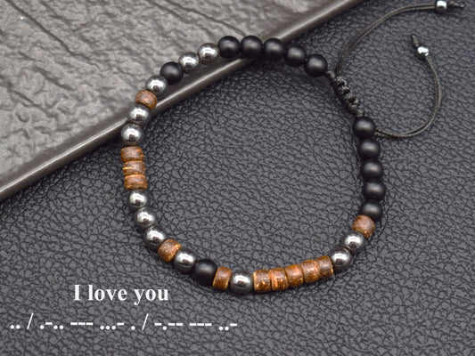 Morse code bracelet I Love You secret message gift wood hematite beads