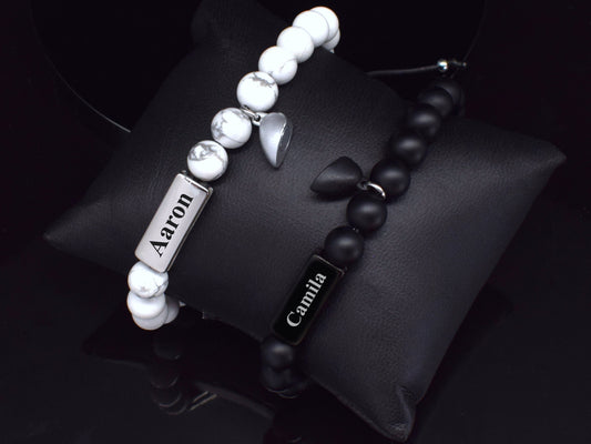 Personalized bracelets for couple with magnetic heart Custom name, date, initials