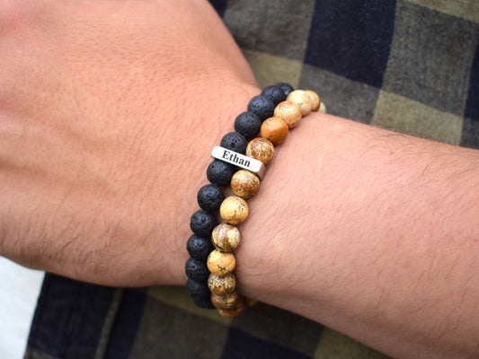 Name bracelet for men boyfriend dad custom gift idea for birthday lava jasper beads