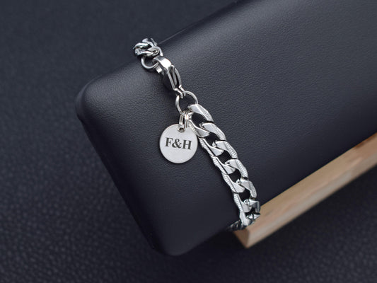 Stainless steel bracelet Customise jewelry for him Curb chain with letter