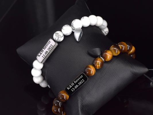 Сouples bracelet with engraved initials date Customized couple gifts