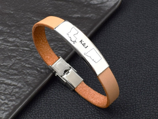 Leather bracelet men long distance relationship gift State bracelets