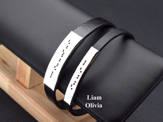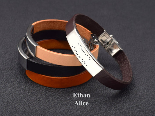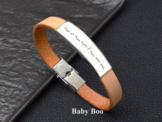 Custom leather Morse code bracelet women anniversary girlfriend gift