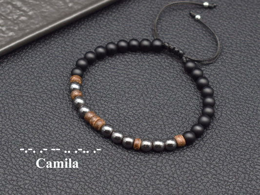 Morse code bracelet I Love You secret message gift wood hematite beads