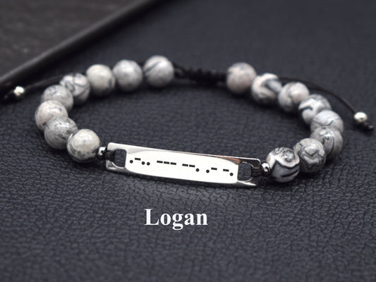Custom Morse code bracelet men name initial anniversary boyfriend gift