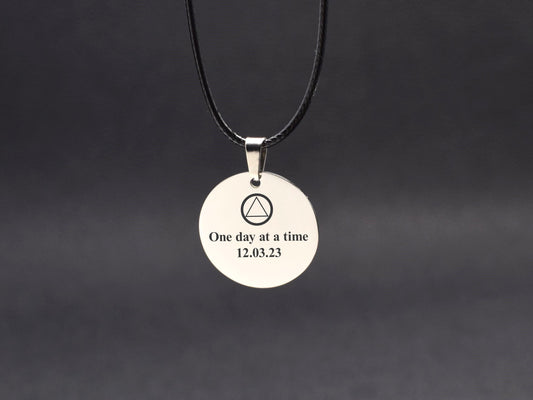 Sobriety anniversary gift for him Addiction recovery necklace One day at a time