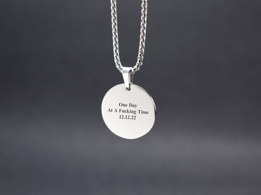 Recovery necklace Sobriety gift for man Sober date AA medallion pendant