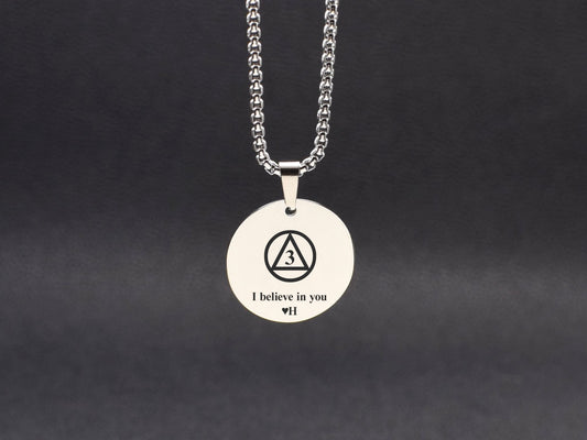 Sobriety necklace AA symbol Recovery necklace for men Stay strong