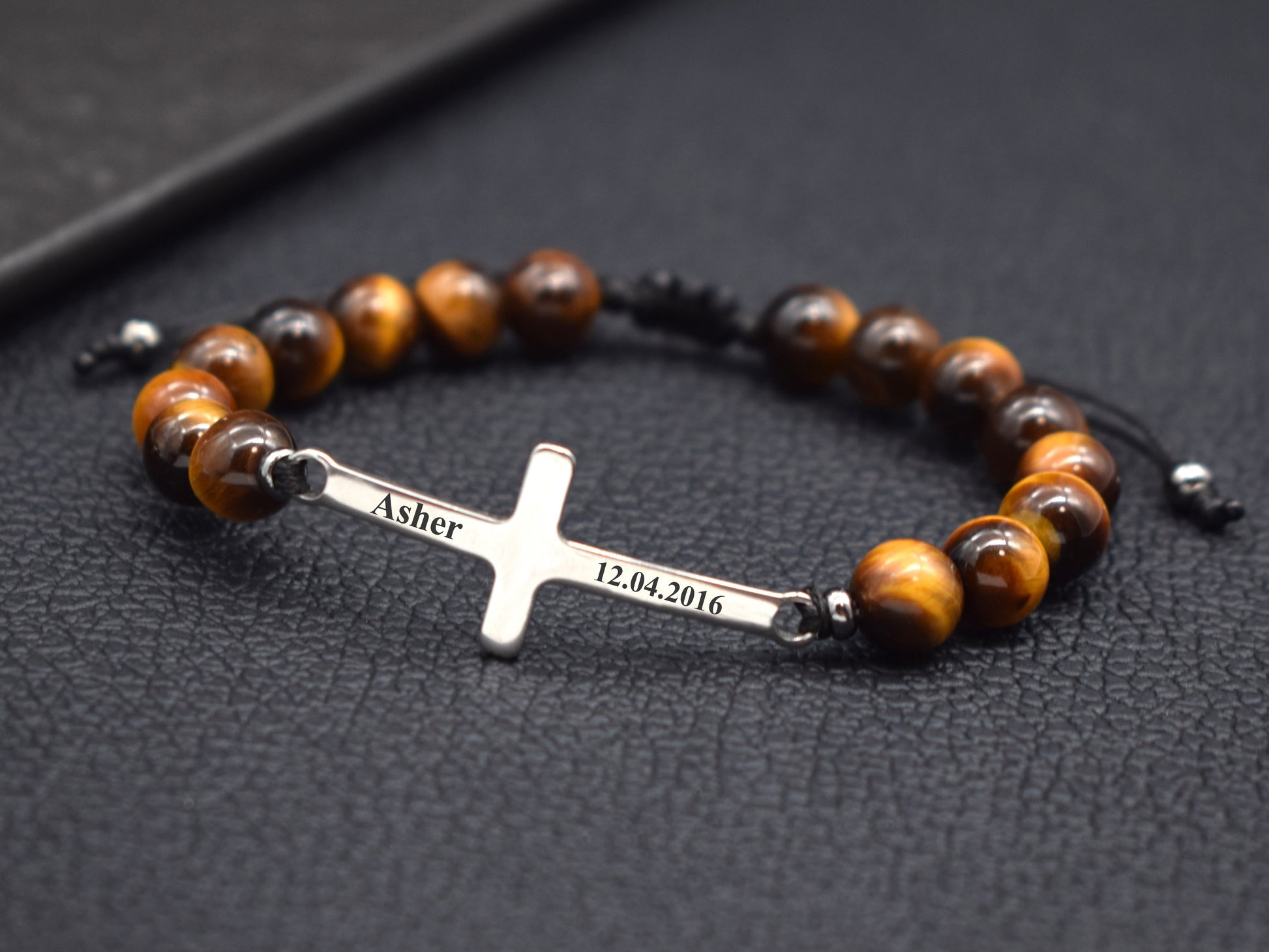 Personalized cross bracelet for women and men with engraved Bible verse or initials or name or baptism date is a treasured piece of jewelry that combines faith and individuality.