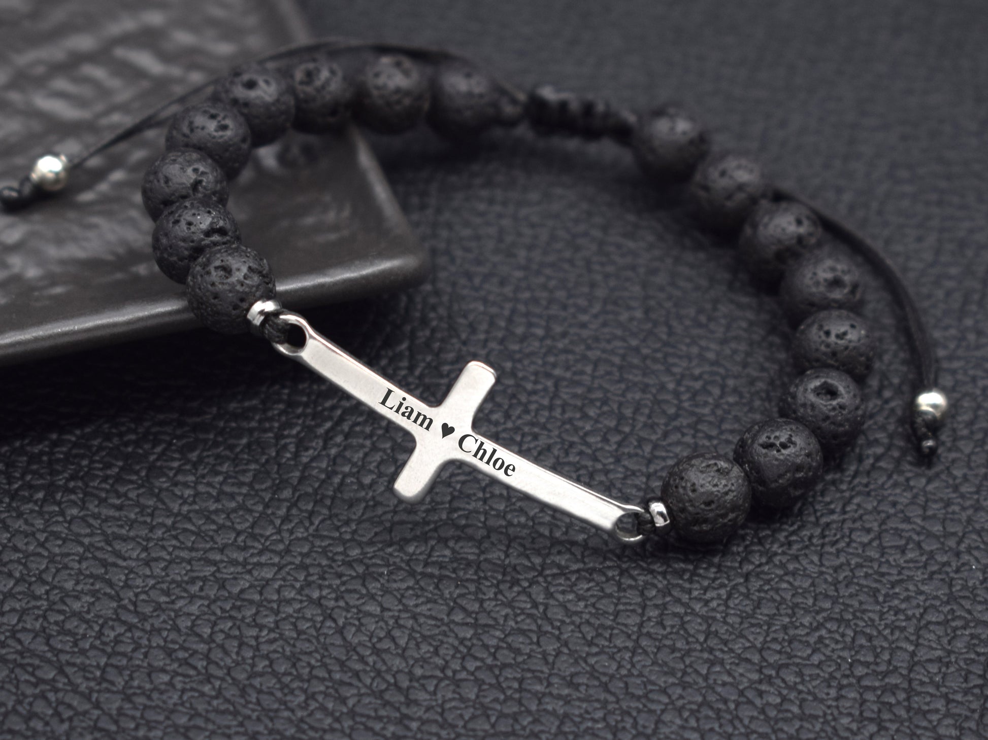 Mens cross bracelet with stainless steel cross symbolized of devotion, unity and love, making them popular gifts for couples, family members, and close friends.