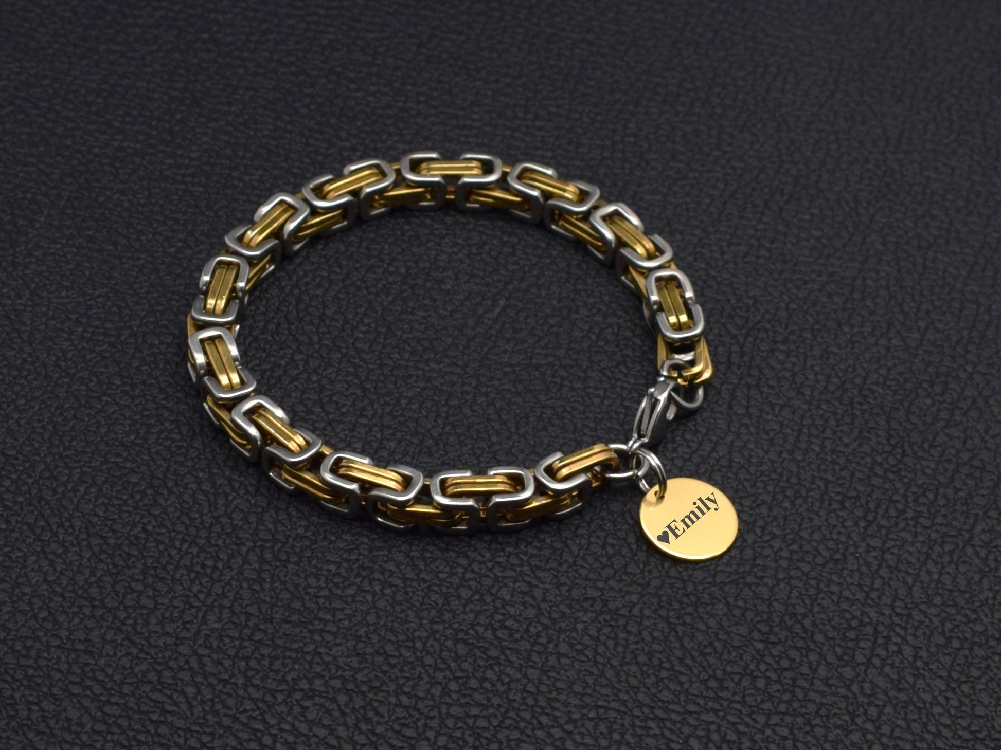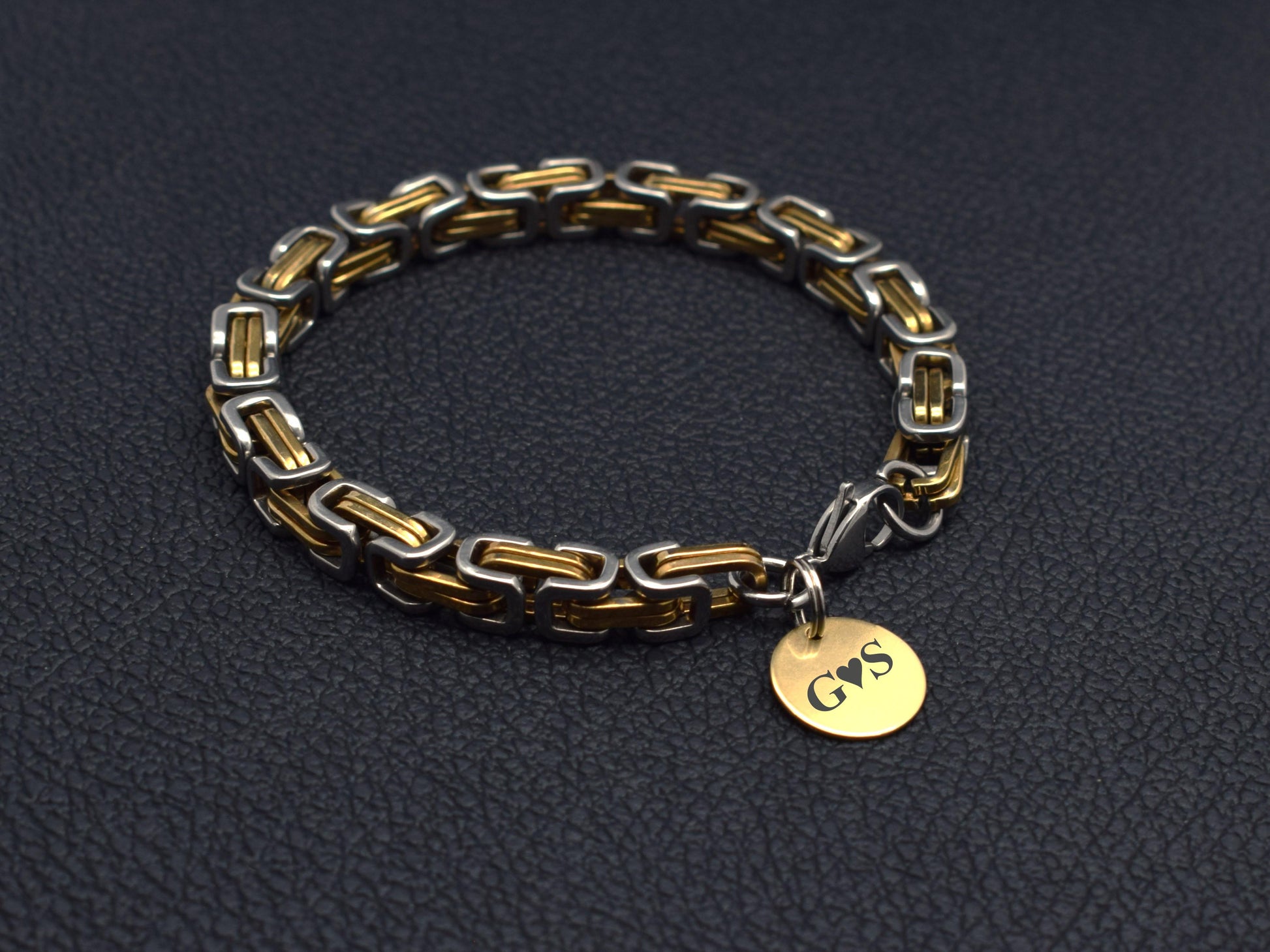 Engraving on bracelets - cool gift idea for men. Personalized bracelet with names, initials, monogram, date is a meaningful gift for him. Made of high quality gold, silver plated stainless steel, this chain bracelet has a design that is a stylish accessory for every day. And the personalization will add a unique and special gift for a boyfriend, husband or friend.