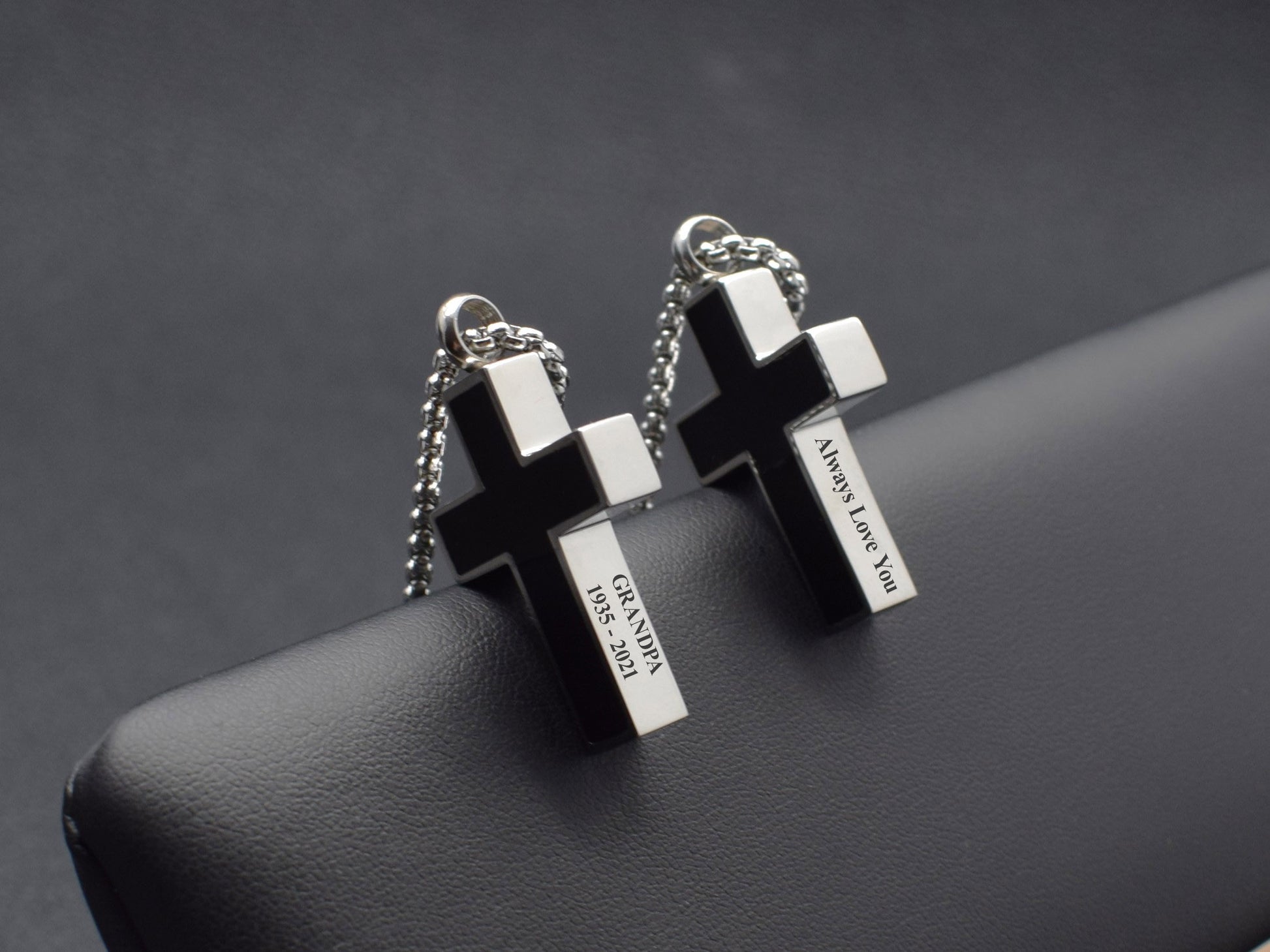 Cremation necklace to honor your loved ones. Stainless steel cross necklace serves as a timeless tribute, crafted to hold a small portion of cremation ashes.