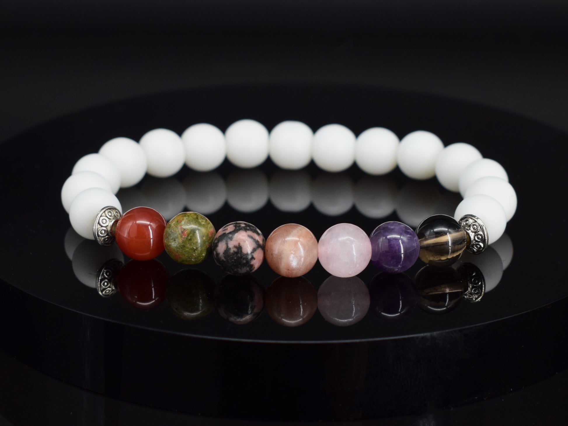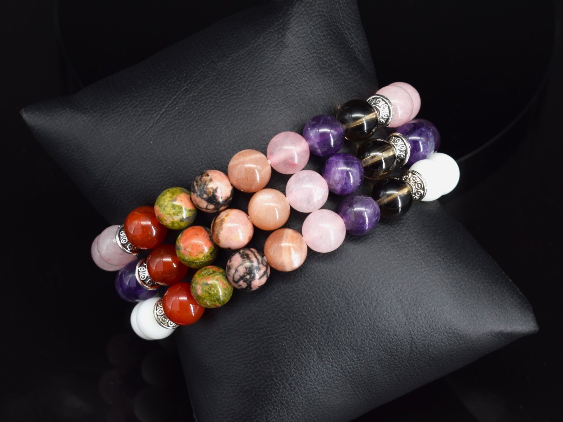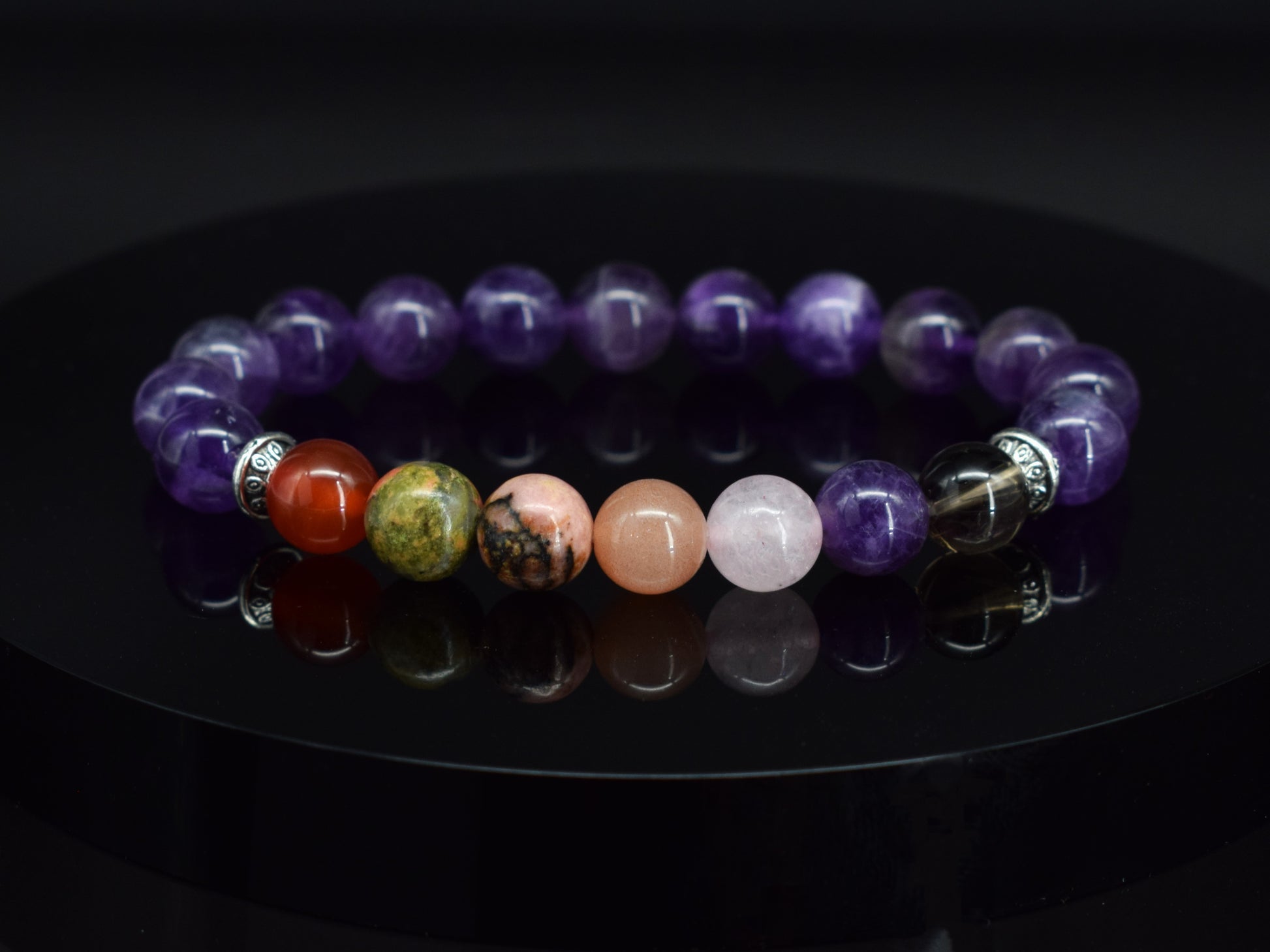 Handmade fertility bracelet with 7 women stones. Gemstone bracelet is a combination of Carnelian, Unakite, Rhodonit, Moonstone, Rose quartz, Amethyst, Smoky Quartz.