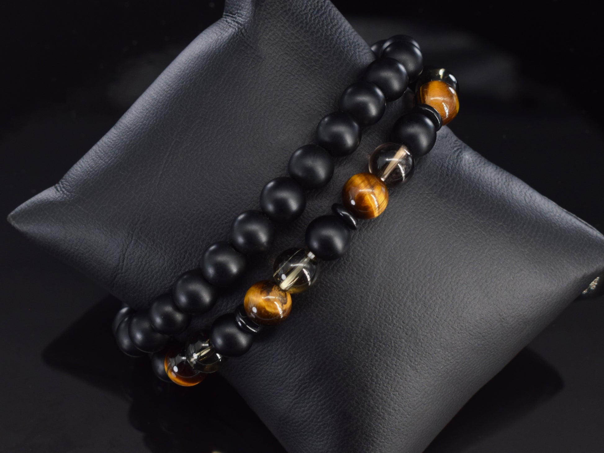 Anxiety bracelets promote inner peace and focus the mind, dispelling fear and anxiety. Onyx - strength and self-control. Tigers eye - protection and clear thinking. Smokey quartz - serenity and positive thoughts.