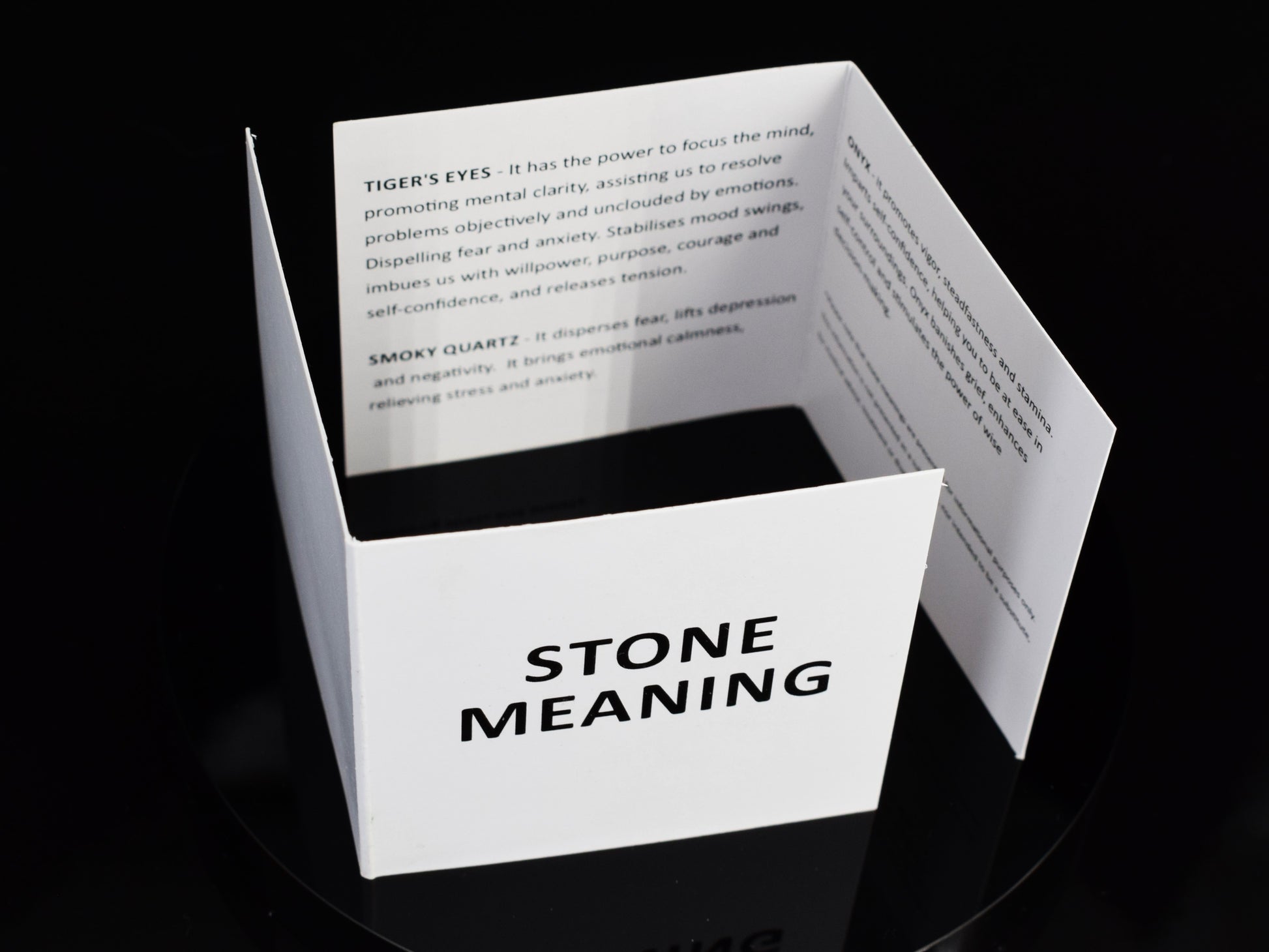 - 3 anxiety crystals: Onyx, Tiger's eye, Smoky quartz